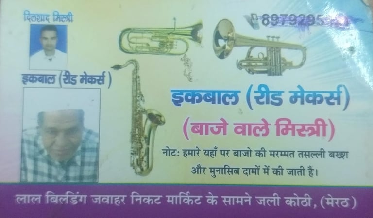 हम मेरठ में वर्षों से बाजे वाले मिस्त्री के रूप में वाद्ययंत्रों की मरम्मत और रीड (Reed) बनाने का काम करते आ रहे हैं। हमारी पहचान भरोसे, अनुभव और संतोषजनक सर्विस के लिए है।