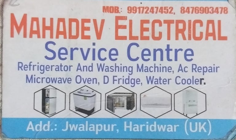 महादेव इलेक्ट्रिकल रिपेयर & सर्विस सेंटर – हरिद्वार में हम आपके सभी घरेलू उपकरणों की तेज़, भरोसेमंद और किफायती रिपेयर सेवा प्रदान करते हैं।
